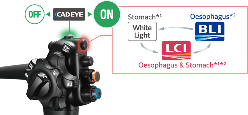 CAD EYE can be activated and deactivated simply by a push on the endoscope button or directly at the processor.