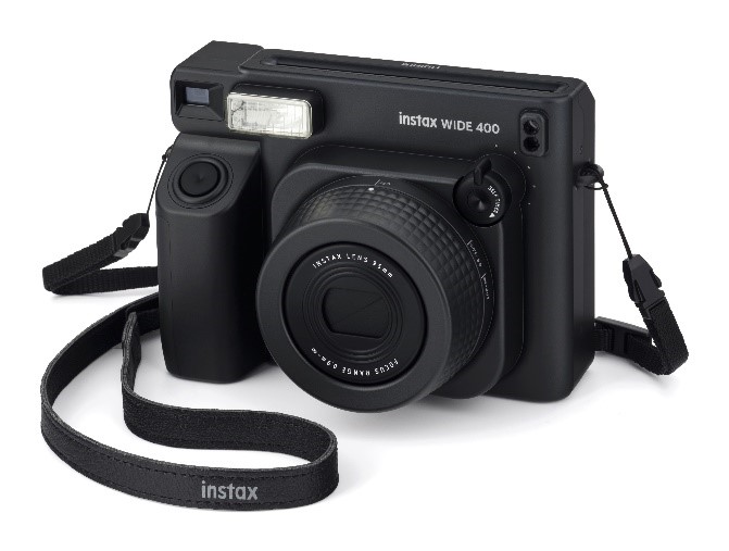 “instax WIDE 400™” “JET BLACK” with the included shoulder strap