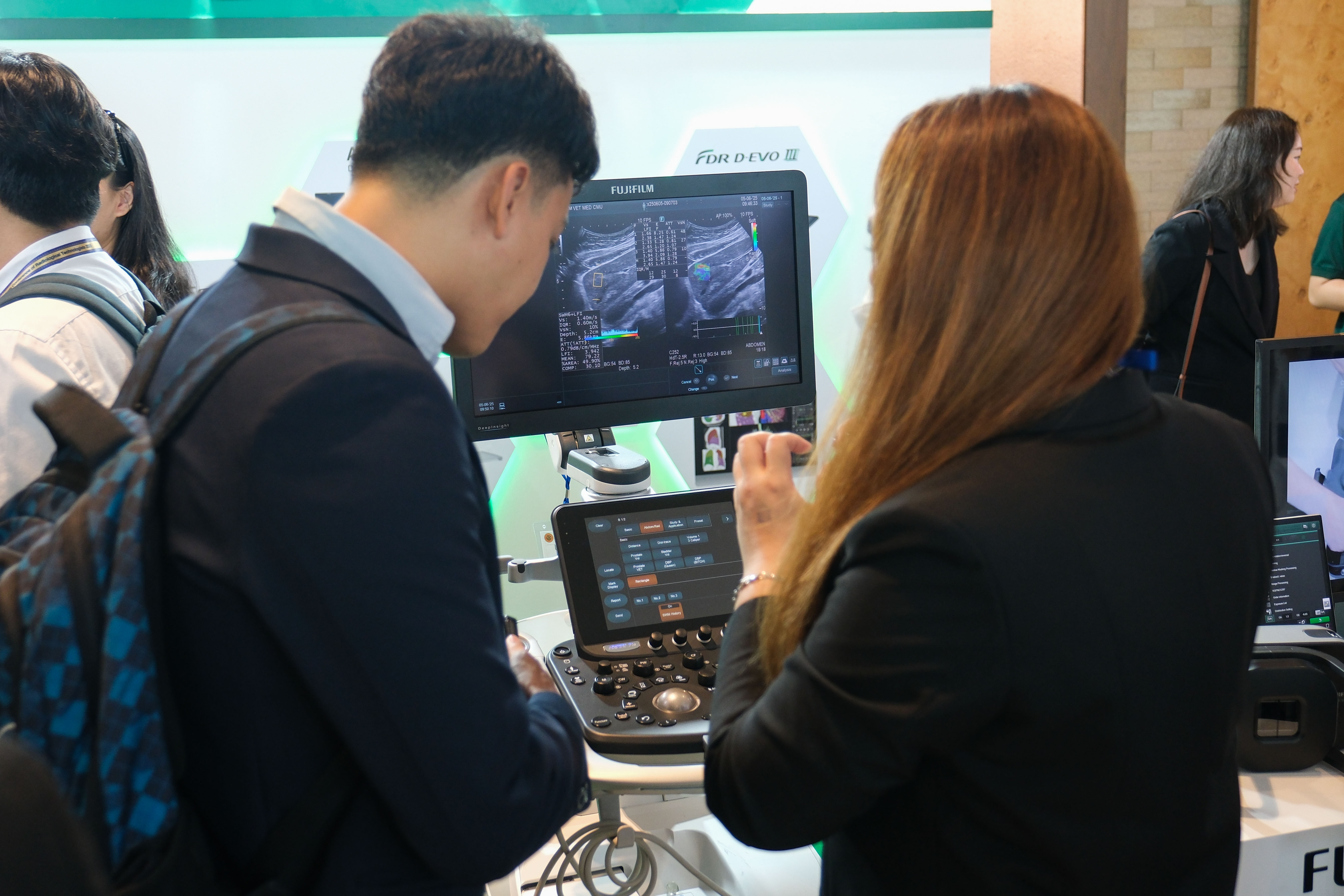 At the conference, Fujifilm showcased its latest medical diagnostic imaging innovations, including the FDR Xair portable X-ray unit, which stands out with its lightweight design of just 3.5 kilograms. This X-ray unit can be deployed anywhere to provide medical services to the public, particularly for mobile medical units in remote areas, helping reduce healthcare disparities and improve access to disease screening. The system features AI-powered tuberculosis and lung lesion screening capabilities for accurate detection. Another key solution featured was the ARIETTA 750 DeepInsight ultrasound system, which delivers advanced image quality through Fujifilm's proprietary DeepInsight technology. This AI-powered technology enhances image clarity, scanning efficiency, and reproducibility, enabling clear visualization of detailed and complex tissue structures with more natural tissue representation, even in patients with high body mass index (BMI) where scans can be compromised by signal interference or inconsistent focusing. Visitors experienced live demonstrations of both flagship solutions, witnessing their user-friendly features and intelligent processing capabilities. Both systems enhance diagnostic accuracy and enable early detection of abnormalities for timely patient treatment.