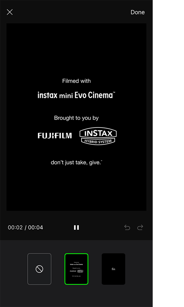 The dedicated app*2 allows users to edit videos by combining clips and adding cinematic opening and ending templates, making it possible to create them more special. Furthermore, it features a “Direct Print Function” that lets users turn smartphone images into instax™ prints.