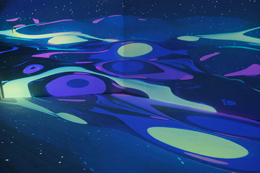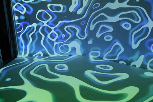 “I thought when we have people to enjoy surround experience with visual content in a narrow space, they would fit into the atmosphere more smoothly by adding visual effects with geometric designs and particles rather than by adding specific images or movement. Therefore, I tried to choose abstract content as much as possible. However, I think that natural visual effects related to the natural environment of the oceans could be leveraged in such a limited space.