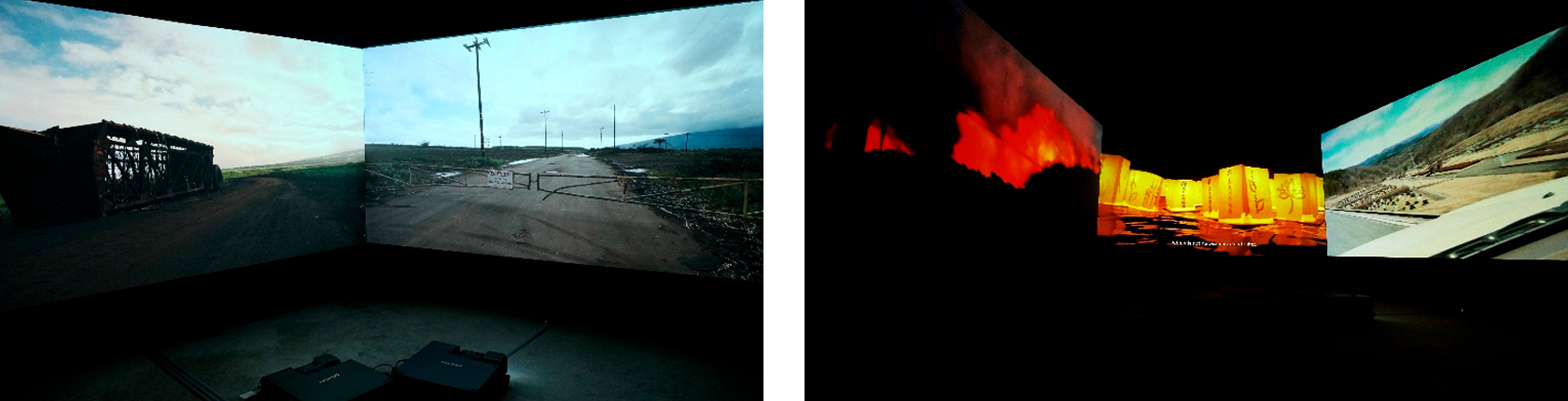 It is an ultra-short-throw projector capable of producing maximum projection at limited space as well as impressive colors. Its color reproducibility is incredible. Artists were stunned and impressed to see the level of black depth. The quality of images mapped to three walls was so powerful.