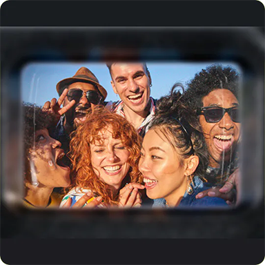 何不嘗試開啟閃光燈,為您的畫面營造截然不同的影像氛圍? 若要開啟此功能,請使用相機正面的開關(有效閃光燈範圍為 3 公尺)。