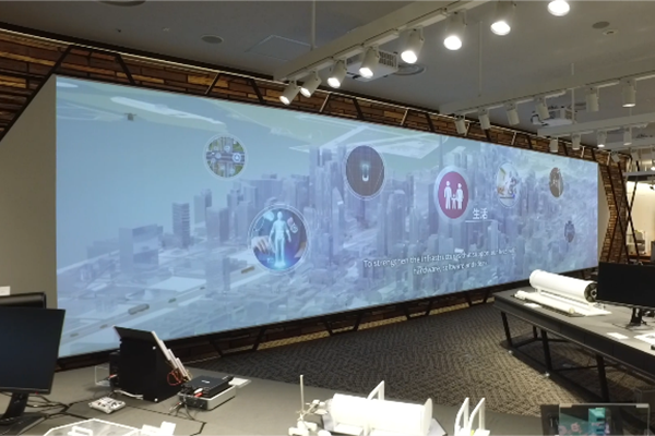 The Hub consists of five areas/zones, Introduction Area, Imagination Area, Touch Zone, Ideation Zone, and Concept Creation Area, and three FP-Z8000 projectors are installed in the Touch Zone.