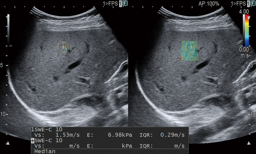 By integrating the two non-invasive methods for evaluation of liver tissue stiffness, namely RTE and SWM, it is possible to assess the chronological progression of liver inflammation and fibrosis with greater accuracy. A combined simultaneous estimation of the degree of steatosis (ATT index) makes Combi-Elasto a comprehensive tool for the differential diagnosis of liver disease.