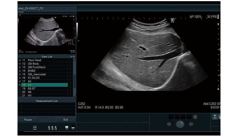 Simpson measurement, which utilizes AI technology*1, automatically recognizes LV, LA and RA intima and measures the volume. Additionally, a wide range of functions are supported to improve the workflow of cardiovascular measurement, such as Doppler Cursor Assist.