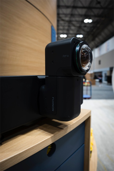 The projectors were the ideal solution for Falkbuilt’s booth. As visitors approached the display, the versatile mounting options ensured there were no shadows on the wall. The flexibility of FP-ZUH6000 projectors meant they could be laid flat while using the 360° lens to project in portrait orientation, maximizing the use of the limited space.