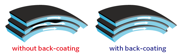 Hoy en día, no se produce ningún daño incluso si la cinta se deja enrollada durante largos períodos debido a mejoras en los materiales de la cinta, la estabilidad de las capas magnéticas, la menor tensión de la cinta (relajando la tensión en el bobinado) y tecnologías como el recubrimiento posterior (Fig. 3).