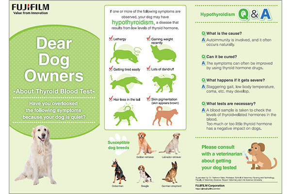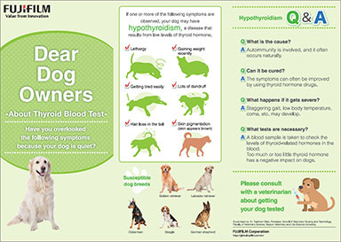 This is a leaflet for petowners to help them understand the Hypothyroidism disease. Pet owners can learn about the most common symptoms and susceptible dog breeds of Hypothyroidism, and understand the importance of testing through the Q & A. This leaflet serves as a tool to help the communication between the veterinarians and petowners.
