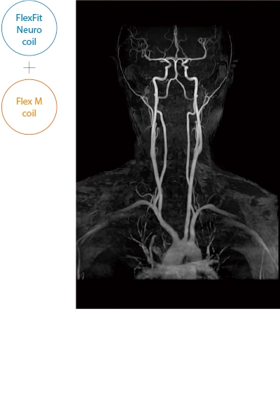 The ECHELON Synergy ZeroHelium is equipped with a flexible head and neck coil that allows one-action setup via sliding installation, as well as a Flex coil that provides wide and flexible coverage of the imaging area. This enables flexible adaptation to different part of body.