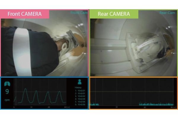 Monitoring cameras are installed on both the front and rear sides of the bore. If the patient makes significant movements, it notifies the operator through screen alerts and sound. Additionally, the system can detect patient movements that may cause artifacts, such as coughing or sneezing.